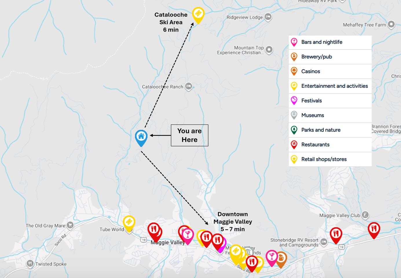 • This is one private suite on the LOWER floor of a duplex-style cabin. Please keep the door on the internal stairs secured (latched) at all times. • Parking on driveway available for two (2) vehicles • 3 exterior security cameras (facing out) • Low ceilings in some areas (7' or slightly less) • The last segment of the road (350 yards) is not maintained by the city. We do our best to work with the neighbors to keep the road in great condition, but sometimes, especially after heavy rain, it can get a little bumpy. Although some guests drive sedans to get to the cabin with no problem, very low cars might struggle. (see last picture for reference) • Check the weather forecast for Maggie Valley, North Carolina, and pack accordingly. Winters can be snowy, normally this is not a problem, but in heavy, extreme snow 4WD w/ snow tires are recommended.