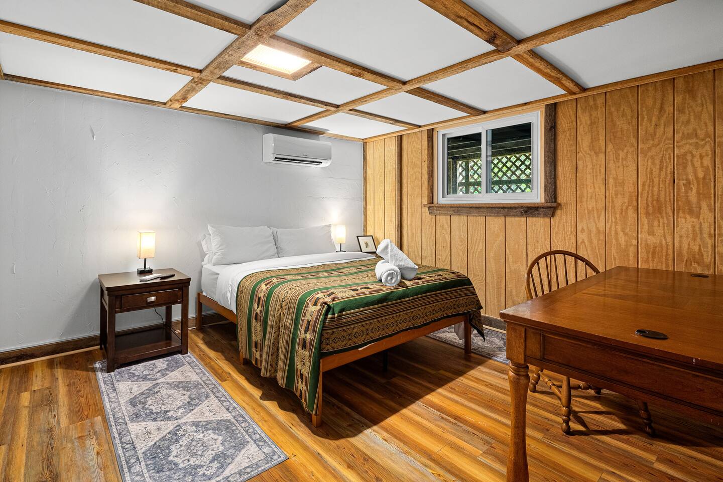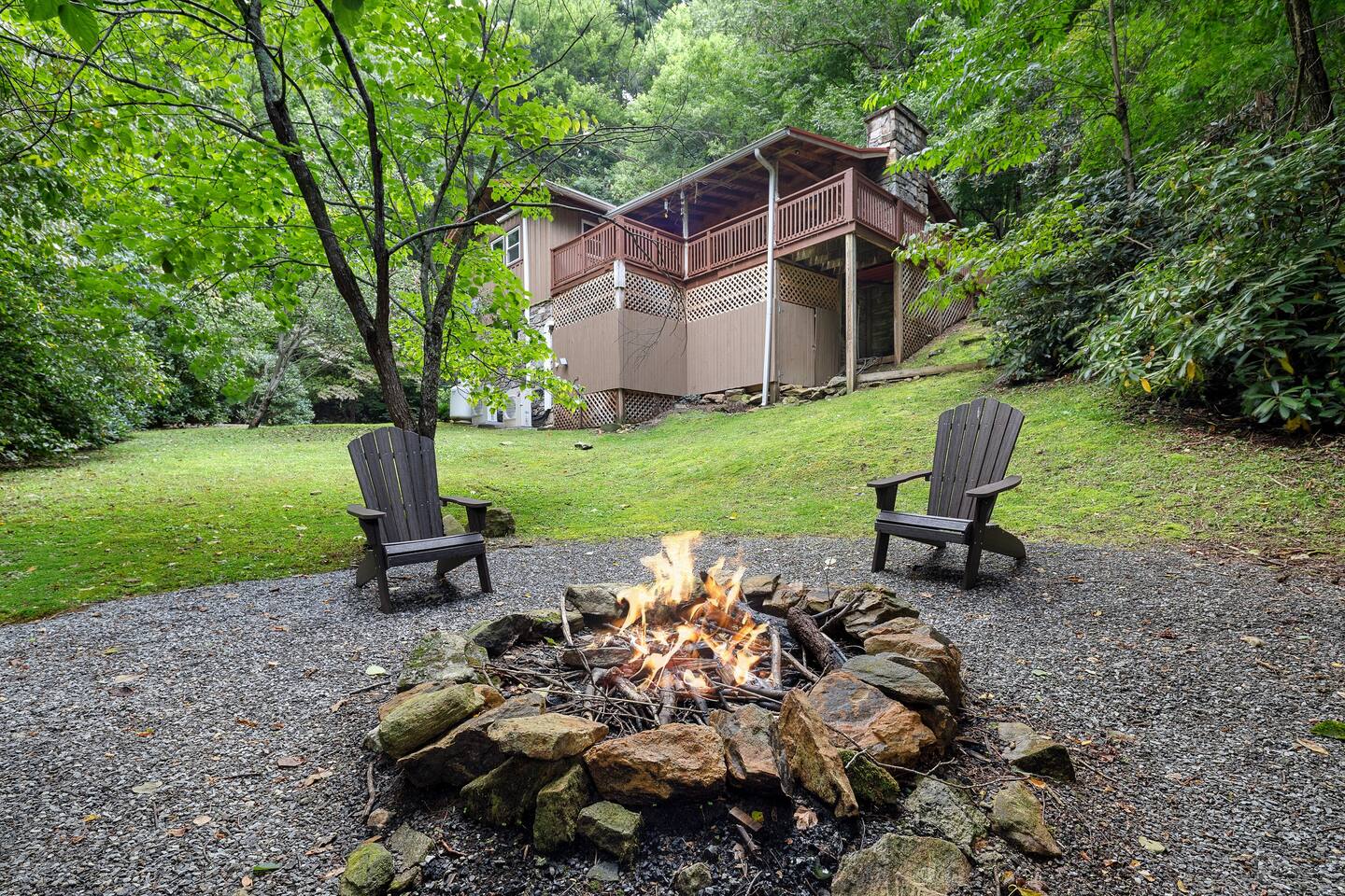 **NOTE ON BOOKING OPTIONS** This listing is exclusively for the LOWER suite. You are booking the private 2BR/1BA unit only. You will enjoy private, exclusive access to all of the following: • Parking 🅿️ & Entrance 🚪 • Full Bathroom 🛁 • Kitchenette ☕ • Living Room and 2 Bedrooms Shared Access Outdoor Areas: Deck on lower level, the charcoal grill, the fire pit area, and yard space are shared with guests in the upper suite. Need More Space? We also offer the option to book the Entire 2-Floor Cabin (Parent Listing) for larger groups. Check the availability of the parent listing if you require the whole property! To help you plan your stay, here is a quick overview of the suite’s amenities and space details:. 🛏️ Sleeping Comfort • Bedroom 2: 1 Queen Bed • Bedroom 3: 1 Twin Bunk Bed • Extra: 1 Full-Size Futon (Living Room) 🌳 Outdoor Living & Views • Deck: Outdoor dining area (Shared) • Cooking: Charcoal Grill 🔥 (charcoal not provided) (Shared) • Fire Pit is available (wood not provided) (Shared) • Yard: Yard space with beautiful mountain views (Shared) • Fun: Cornhole set 🛋️ Indoor Features & Entertainment • Desks/work area 💻 • Smart TVs w/ Roku 🍳 Kitchenette Essentials • Small Refrigerator, sink • Small Appliances: Drip Coffee Maker, Microwave, Blender, Toaster • Stocked: Dishes/flatware, Paper Towels, Sponge / Dishwasher ✅ General & Logistics • Climate: Multi-zone A/C & Heating (Ductless) • Tech: Blazing fast 1,000 Mbps WiFi 🚀 & Keyless Entry • Supplies: Linens, towels, and complimentary toiletries